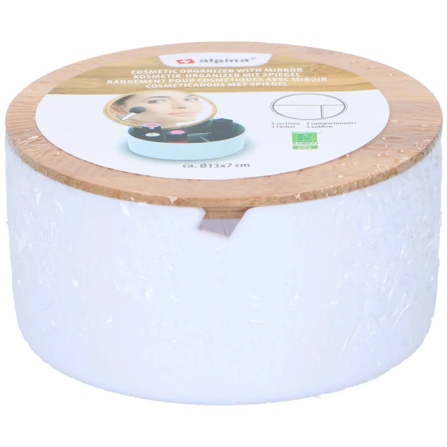 De organizer is Ø13 x 7 cm diep.