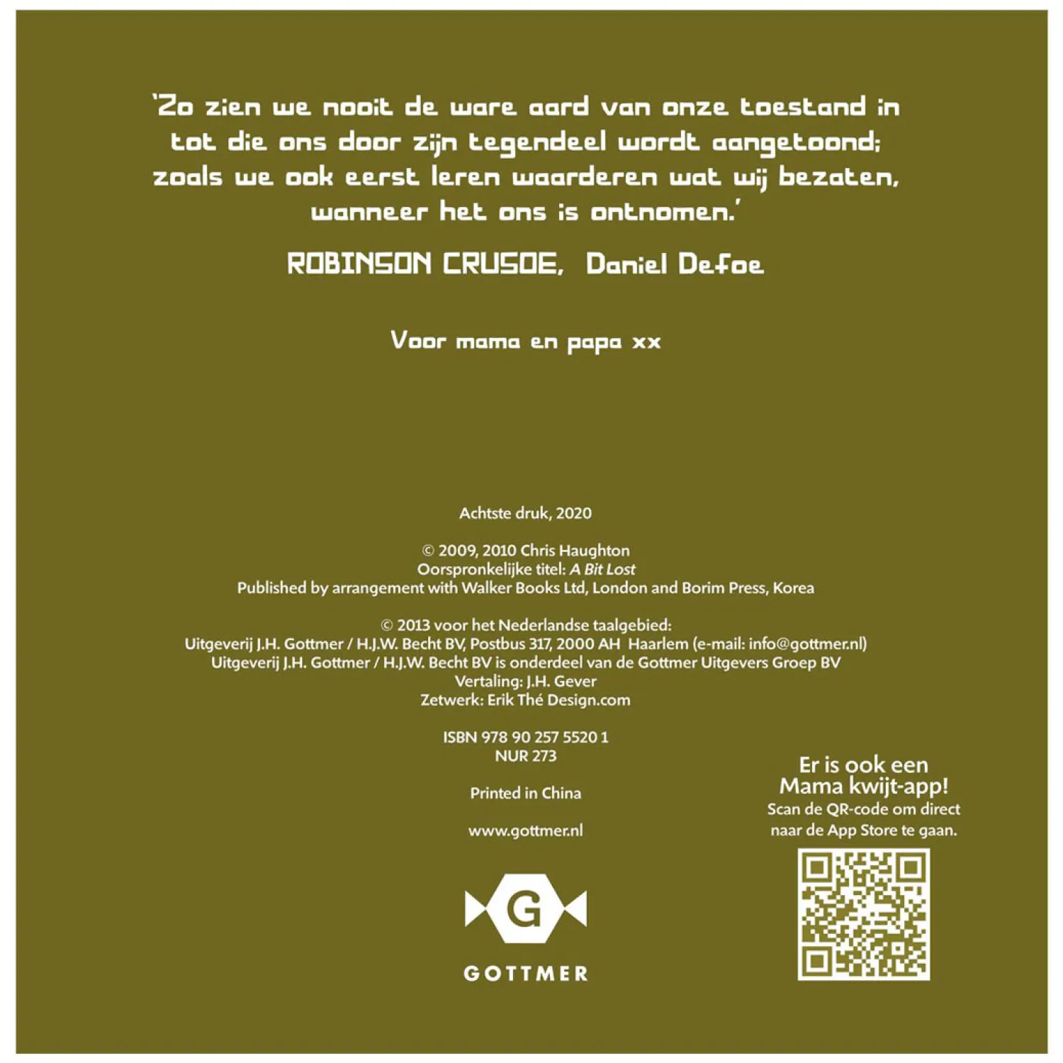 De eigenwijze stijl en droge humor van prentenboekenmaker Chris Haughton spatten weer van de pagina’s. Zijn prentenboek ‘Mama kwijt’ werd Prentenboek van het Jaar 2012 en ook ‘Komt goed, Kleine Krab’ is inmiddels een echte klassieker. Wist je dat er van ‘Misschien…’, ‘Komt goed, Kleine Krab’, ‘Welterusten allemaal’ en ‘Sst! We hebben een plan’ ook kartonedities verkrijgbaar zijn?