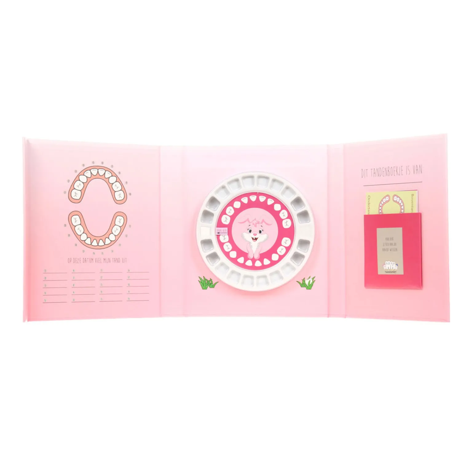 Bewaar je melktanden in dit mooie boekje en raak ze nooit meer kwijt! Je kind kan zijn of haar tandjes toevertrouwen aan stampertje in dit roze tandenboekje. Het tandenboekje bestaat uit een handige houder met draaivakjes waar elke tand zijn eigen plaats heeft. Er is plaats voor een foto en bij elke tand kun je bijhouden wanneer deze gewisseld is. Het boekje bevat ook vijf kaartjes met educatieve weetjes over de tanden vergezeld van leuke tekeningen of bieden ruimte voor eigen (aan)tekeningen van uw kind. Het boekje heeft een magnetische sluiting om het boekje te sluiten. Een prachtig cadeau voor een pasgeboren baby of een wisselend kind!