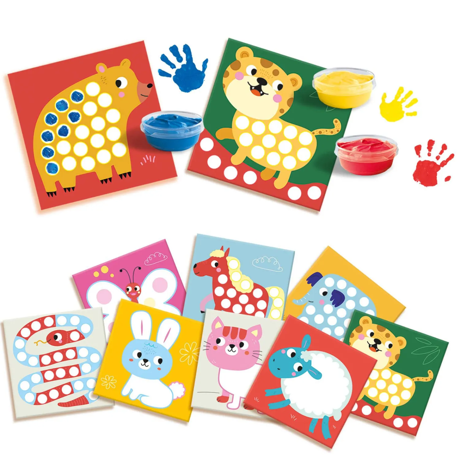 Deze set bevat drie kleuren vingerverf en tien kleurplaten met dieren die jij kunt inkleuren met je vingers. Welk dier ga jij inkleuren? Ga je voor het schattige konijntje of de stoere beer? De witte vakjes op de kleurplaten kun je geheel naar eigen wens versieren.
