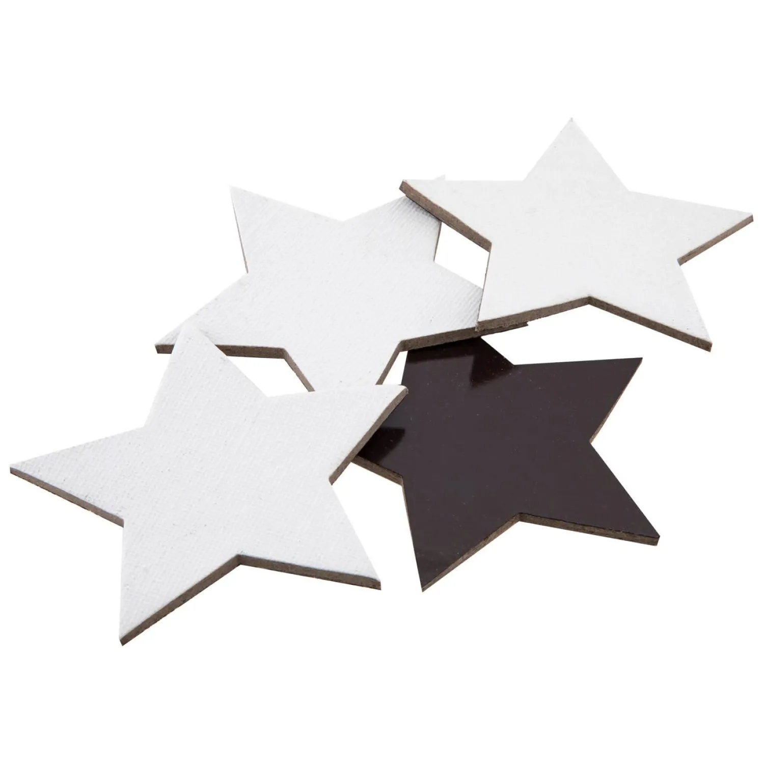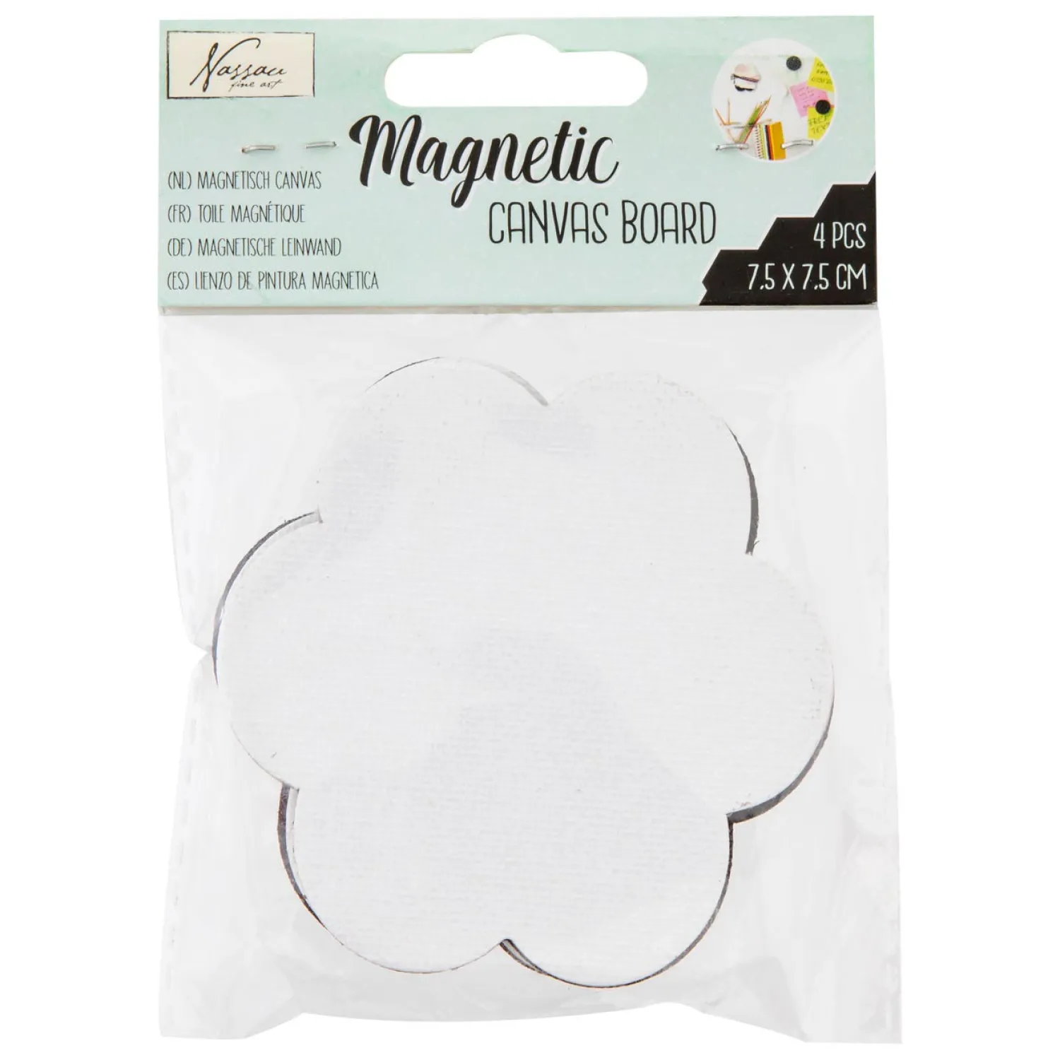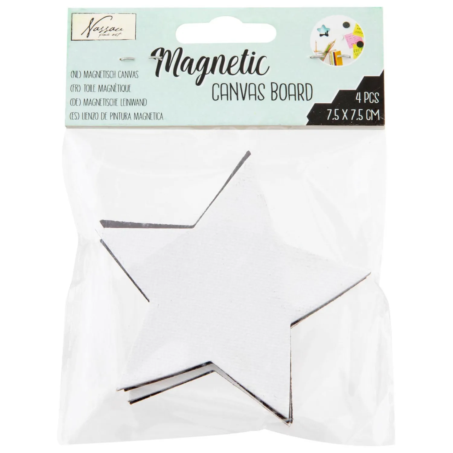 Maak je eigen magneten met deze magnetische canvas borden van Nassau! De voorkant kan je zelf versieren, beschilderen, met stift inkleuren of beplakken met stickers of glitters bijvoorbeeld, en vervolgens ophangen aan een magnetisch oppervlak! De ster- of bloem-vormige magneten zijn 13 bij 9,5 bij 2,1 centimeter groot. Geschikt vanaf 3 jaar.