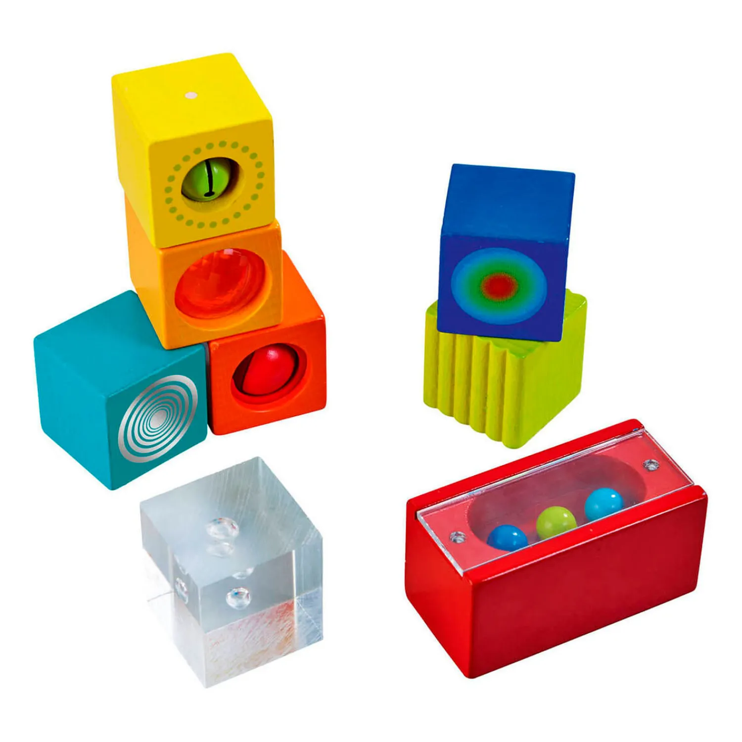 Een belletje, een rammelaar, een doorkijk, een knikkerspel … deze ontdekkersstenen bevatten veel effecten, die kinderen met al hun zintuigen kunnen onderzoeken. En natuurlijk kunnen met de ontdekkersstenen ook prachtige torentjes worden gebouwd. De set bestaat uit 8 blokken.