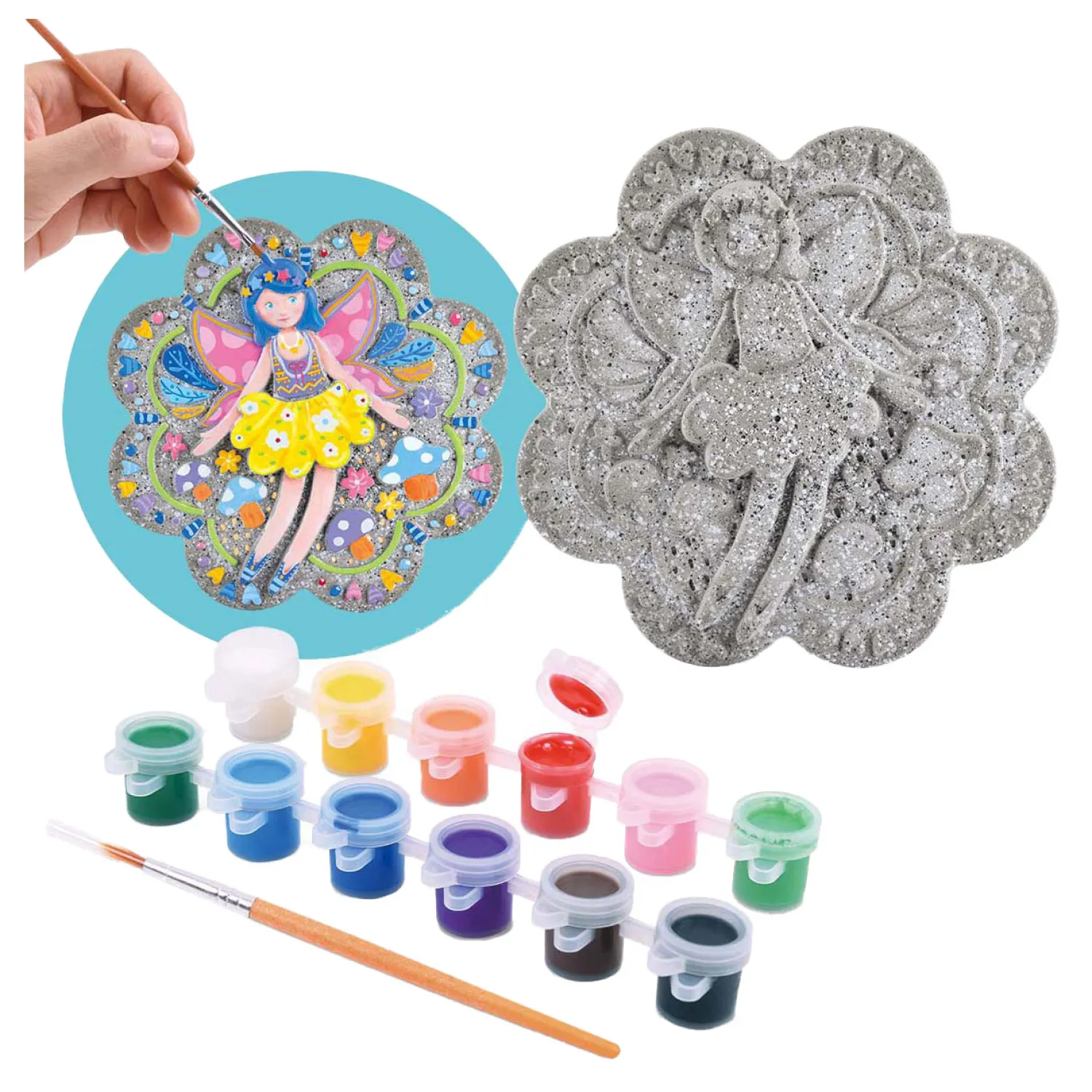 De set bevat een steen, penseel en 12 kleuren verven. Geschikt voor kinderen vanaf 8 jaar.