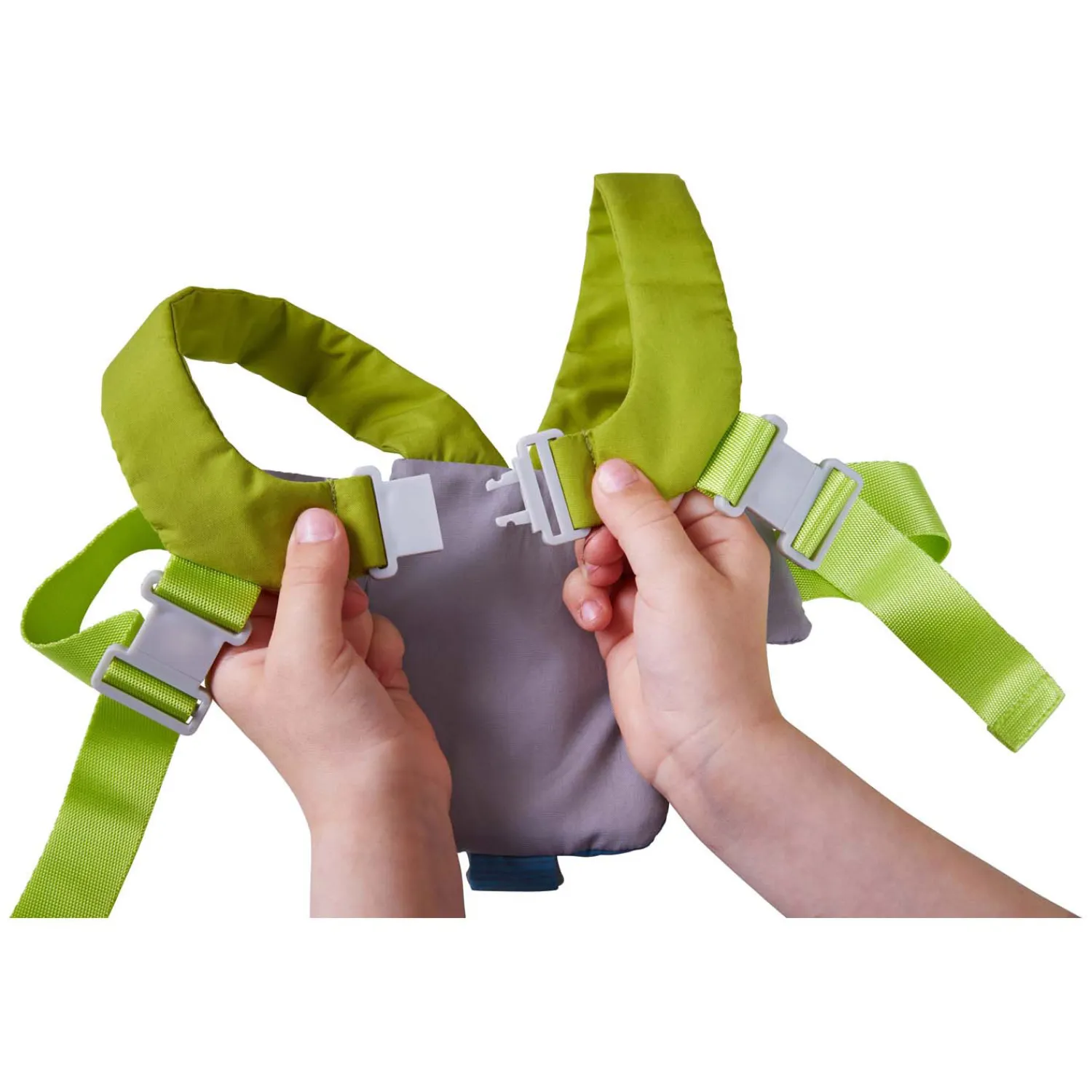 met de klittenbandsluitingen wordt de pop stevig vastgezet