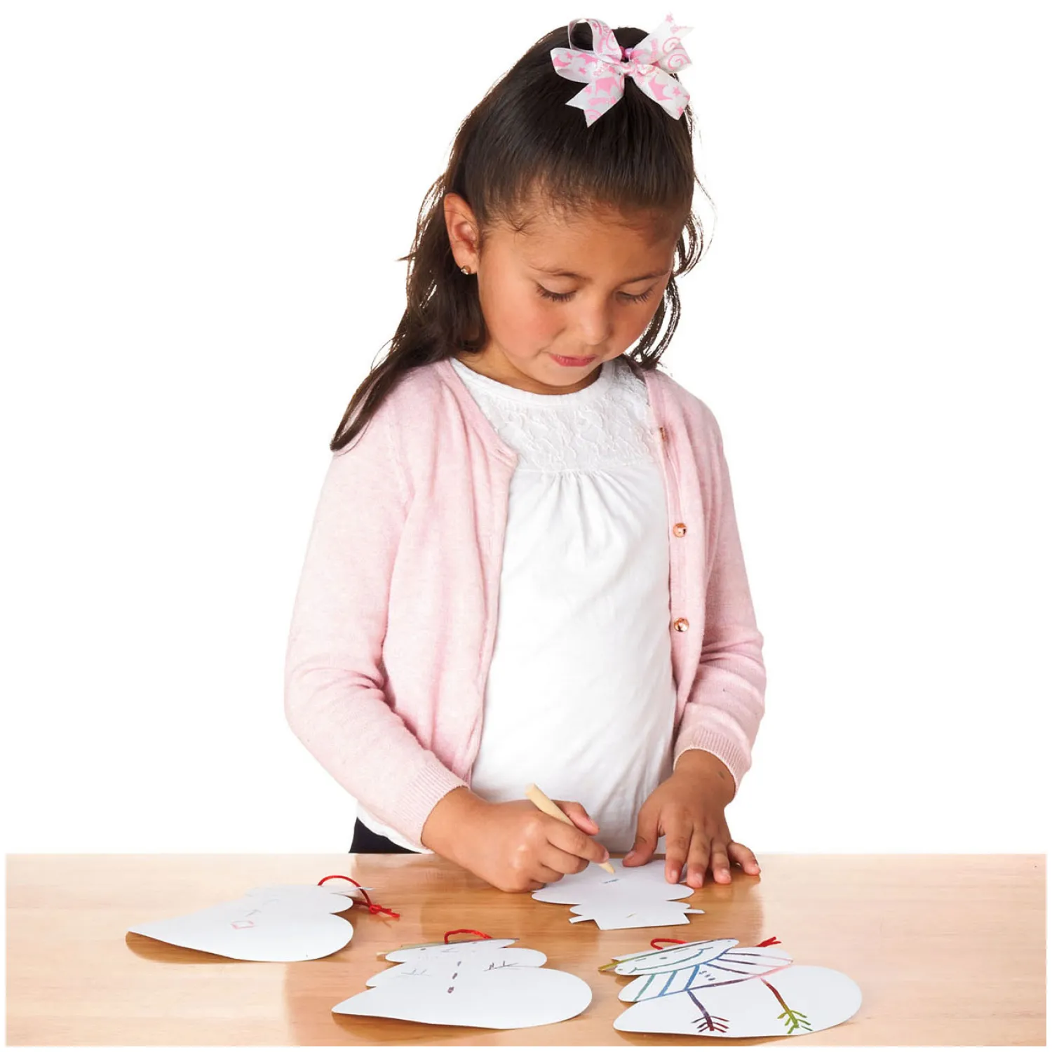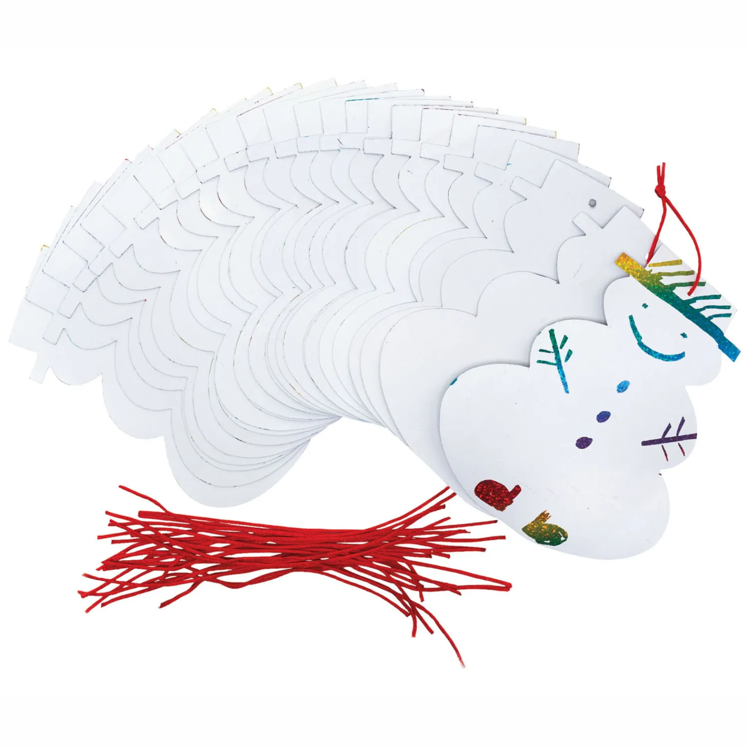 • WAT JE KRIJGT: Set van 20 sneeuwpoppen. Elke pop is 18 cm H x 15 cm B. Wit, gemakkelijk te krabben oppervlak met daarachter glitterende regenboogkleuren. Elke houten stok kan worden gebruikt om kunstwerken te maken.