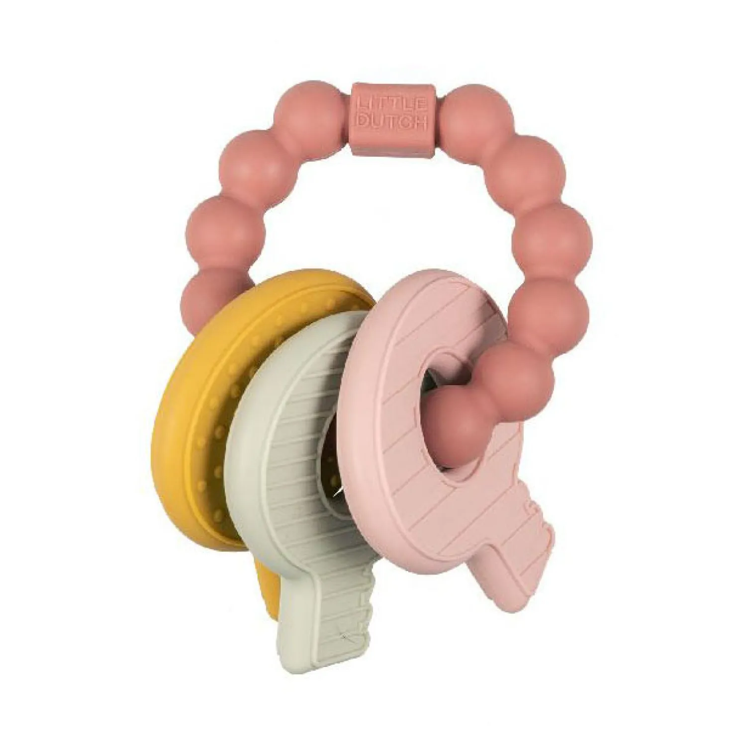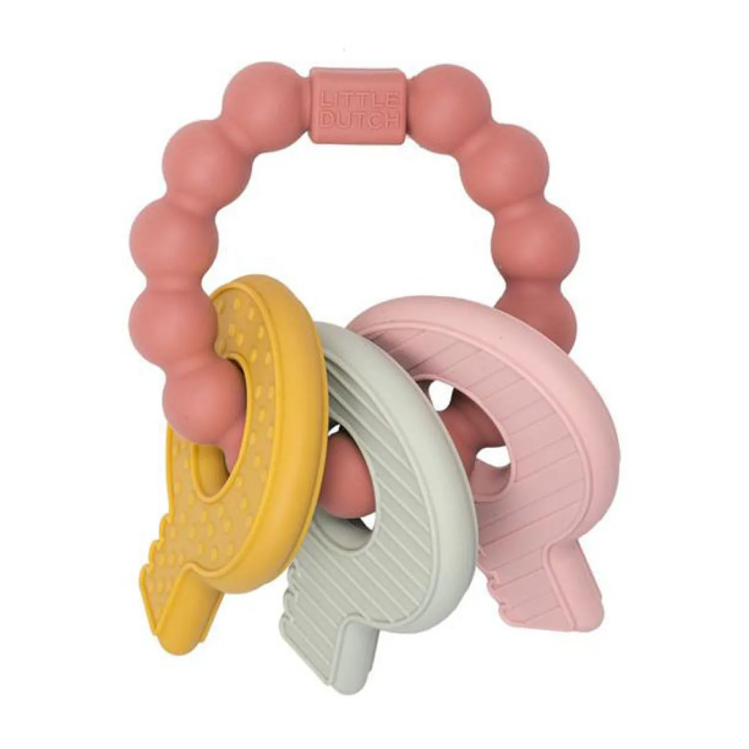 Siliconen Bijtspeeltje Sleutelbos Roze>Little Dutch New