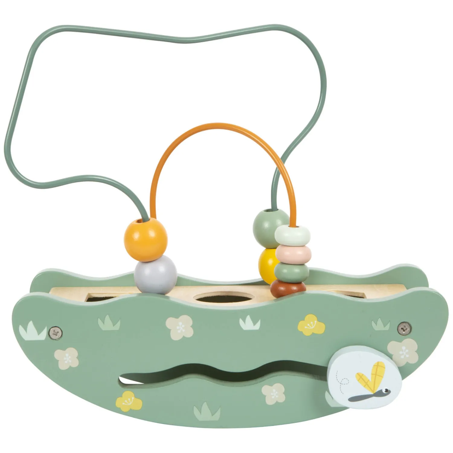 Behendigheid en hand-oogcoördinatie worden ook getraind met de vormenstoof door de drie schattige dierenfiguurtjes door hun respectievelijke openingen te steken. Voor extra plezier en vaardigheidstraining is er het geïntegreerde schuifspel en de kantelbare wipfunctie.