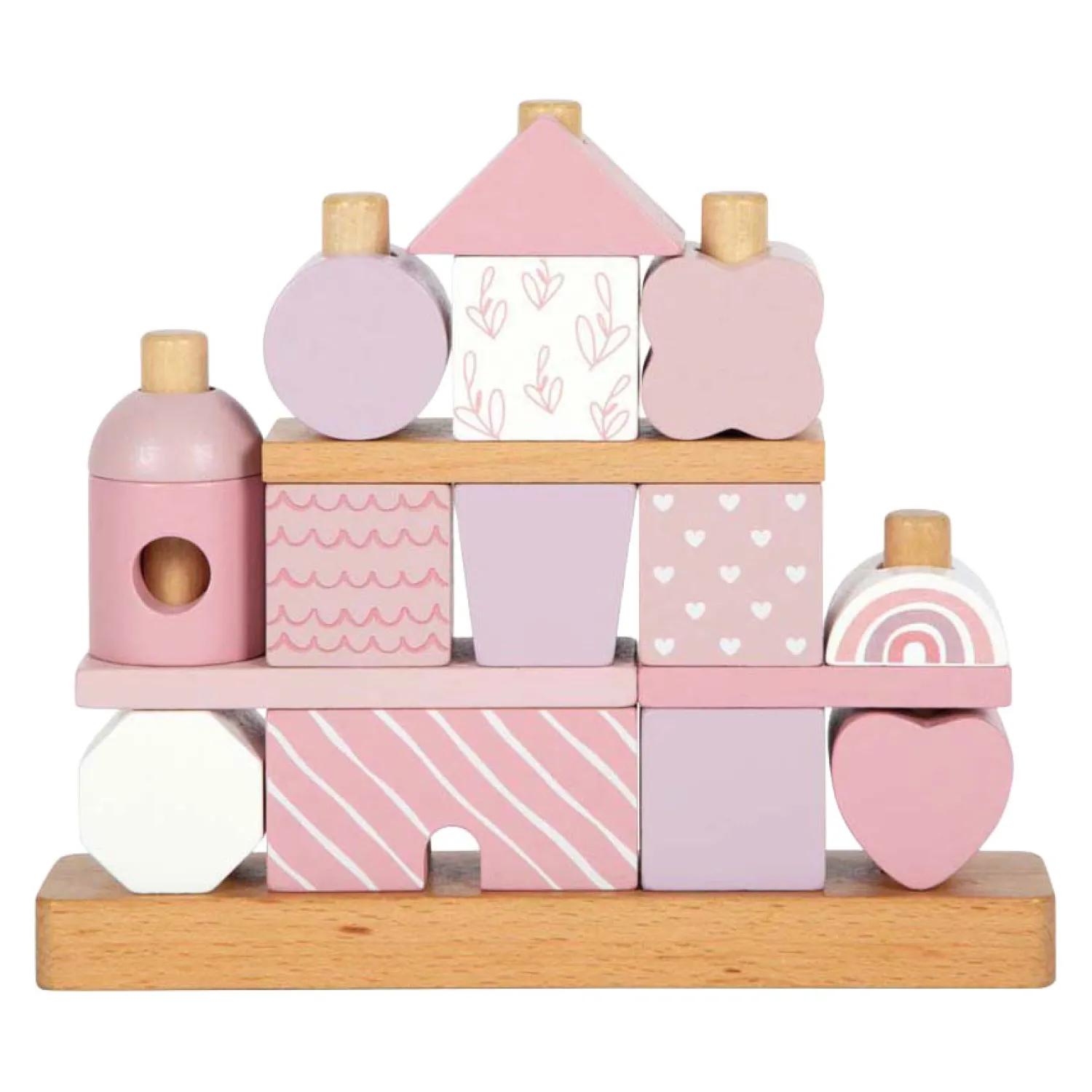 Dit stapelhuisje van hoogwaardig hout biedt jonge kinderen eindeloze mogelijkheden om te ontdekken en te bouwen! De bouwblokken hebben verschillende vormen en patronen, wat zorgt voor afwisseling en langdurig speelplezier. Dankzij de robuuste constructie en afgeronde randen is het stapelhuis een veilig speelgoed voor peuters. Tegelijkertijd maakt de harmonieuze kleurencombinatie dit houten speelgoed tot een decoratief element dat een blikvanger is in de kinderkamer. Dit stapelhuis combineert design, functionaliteit en pedagogische waarde!