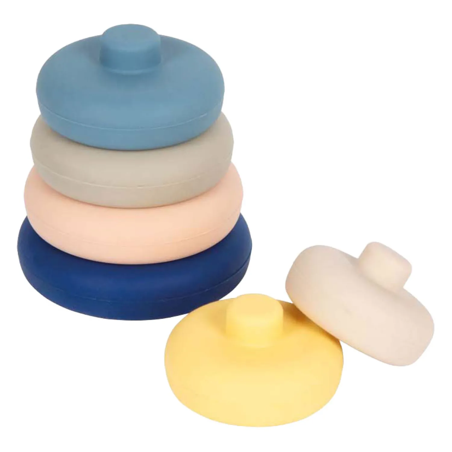 De siliconen stapeltoren is een veelzijdig motorisch speelgoed dat baby’s en peuters helpt bij het zetten van belangrijke ontwikkelingsstappen. De 6 torenelementen van verschillende grootte kunnen veilig op elkaar worden gestapeld zonder middenstang – een pluspunt in veiligheid en een ideale kennismaking met de wereld van het stapelen. Tegelijkertijd worden creativiteit en verbeeldingskracht gestimuleerd wanneer de elementen vrij worden gecombineerd en opnieuw worden gestapeld. Of het nu als toren in de kinderkamer is, als speelgoed in de zandbak of als badspeelgoed in bad: deze siliconen stapeltoren is robuust, flexibel en veelzijdig, waardoor hij perfect is voor dagelijks gebruik door jonge ontdekkingsreizigers.
