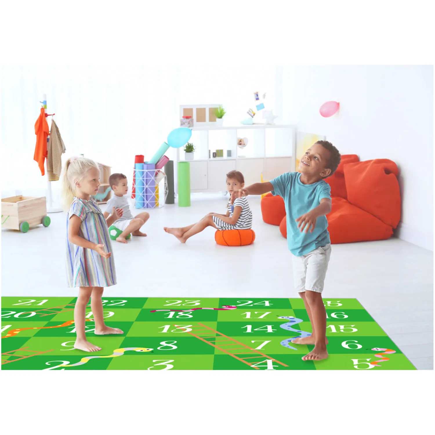 Met deze mega speelmat speel je een potje Slangen en Ladders, met jezelf en je vrienden als pionnen! Rol met een dobbelsteen en speel het spel terwijl je je op de speelmat verplaatst. Ftalaat vrij. UV-resistent. Speelmat is 200 bij 200 cm en heeft een latex anti-slip laag aan de onderkant. Geschikt voor kinderen van 18 maanden tot 6 jaar oud.