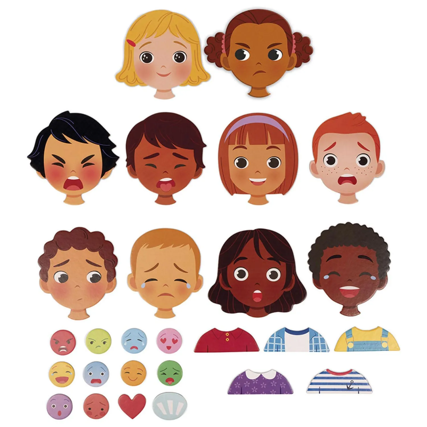 Leer op een leuke manier emoties te koppelen aan gezichtsuitdrukkingen met dit spel! De magnetische kaarten laten allerlei kinderen zien met een bepaalde gezichtsuitdrukking. Je kunt het magnetische kaartje met de bijbehorende emotie aan de kaart laten plakken. Er zijn wel 20 kaarten waar je uit kunt kiezen! Geschikt van 2 tot 5 jaar.