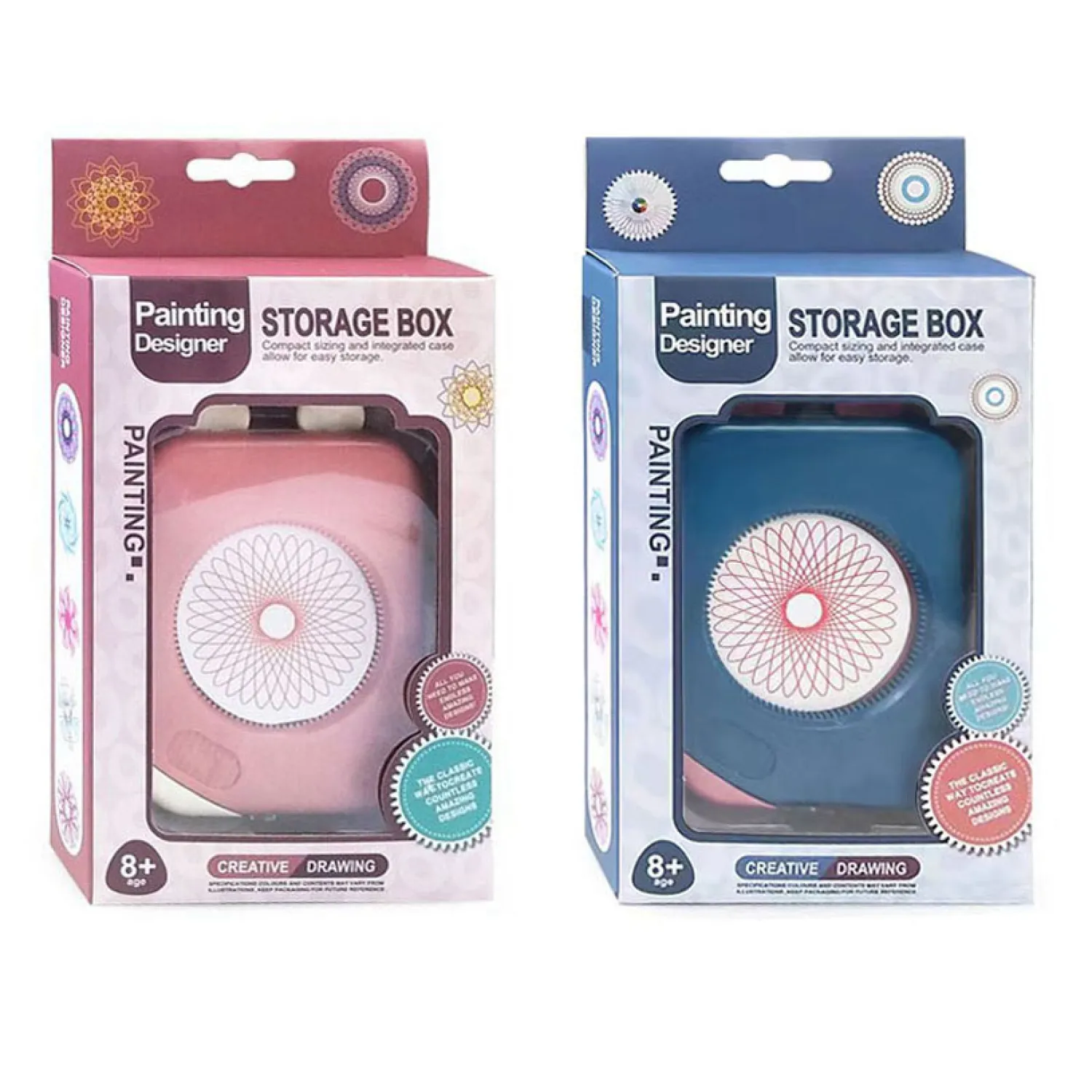Inhoud: opbergbox, 5x spirograaf, design voorbeelden, papier en 3 kleuren stiften (rood, blauw, groen). Geschikt voor kinderen vanaf 8 jaar oud.Prijs per stuk, verschillende uitvoeringen/kleuren worden door elkaar geleverd.
