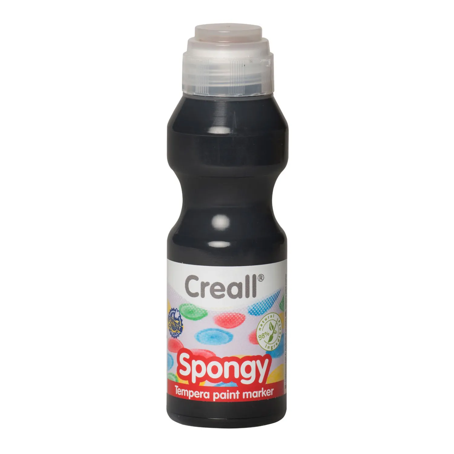 De zwarte Creall Spongy Verfstift van 70 milliliter wordt geleverd in een speciaal ergonomisch flesje voor goede grip.