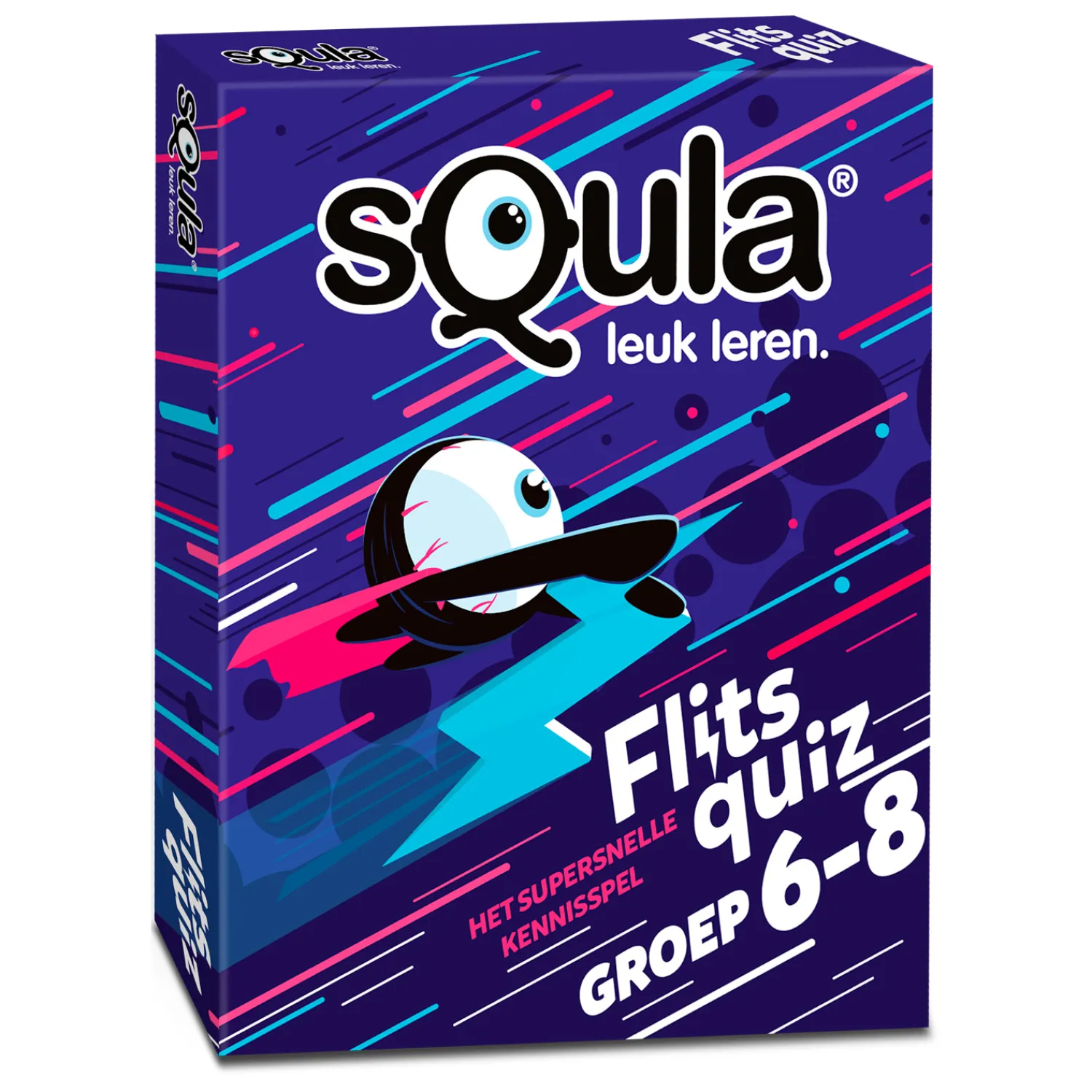Het spel bestaat uit meer dan 100 uitdagende vragen over verschillende basisschoolvakken. Draai een kaart open op tafel en bedenk het goede antwoord. Weet jij het juiste antwoord? Wees dan snel, voor je het weet is iemand je voor. Degene met de meeste punten wint. Speel snel en slim. Klaar voor de start?…Flits!