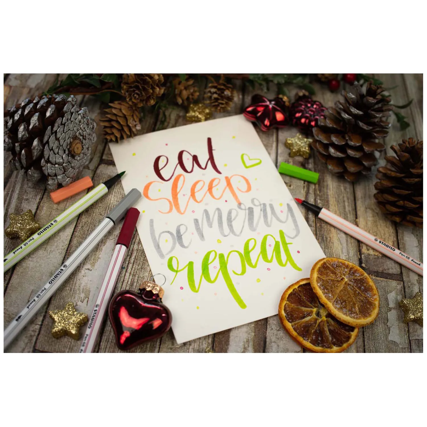 Maar ook voor gevorderden is de Pen 68 brush perfect om heel gemakkelijk mee te brushletteren. Met de inkt op waterbasis kun je prachtige aquareleffecten maken en heel gemakkelijk kleuren mengen of in elkaar laten overlopen.