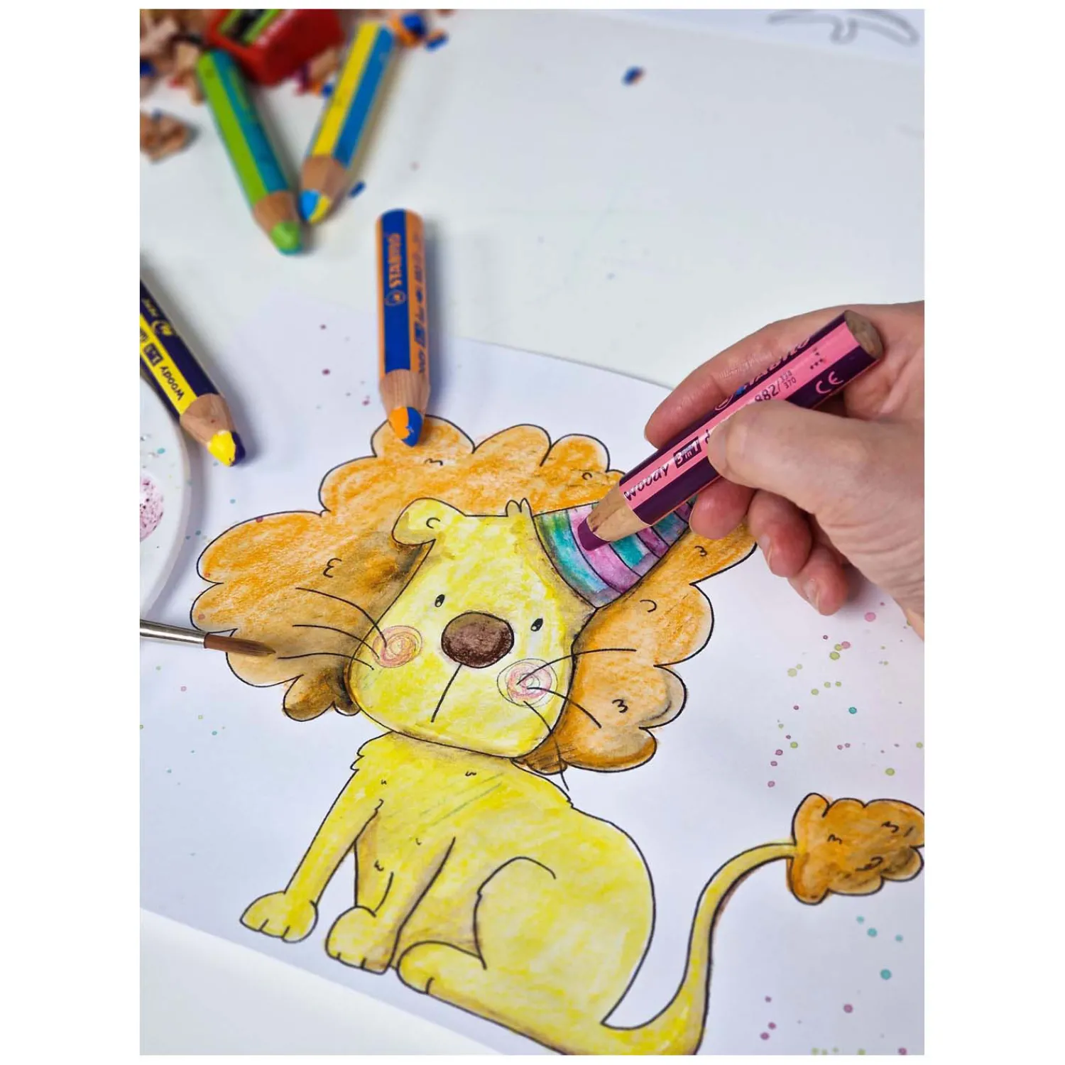 STABILO woody 3 in 1 duo combineert de voordelen van een kleurpotlood, waskrijt en aquarelpotlood in één potlood en zorgt voor eindeloos creatief plezier dankzij de tweekleurige kern. Mooie en contrasterende kleurcombinaties zijn verkrijgbaar. Simpelweg het potlood draaien tijdens het kleuren en de kleur wisselt. Dit multifunctionele kleurpotlood tekent op licht en donker papier, maar ook op karton, glas en andere gladde oppervlakken. Kan ook worden vermengd met water om als waterverf te gebruiken. Dankzij de dikke vorm ligt de STABILO woody 3 in 1 duo perfect in de hand en de dikke kern zorgt voor extra veel kleurplezier en een rijke en gemakkelijke kleurafgifte.