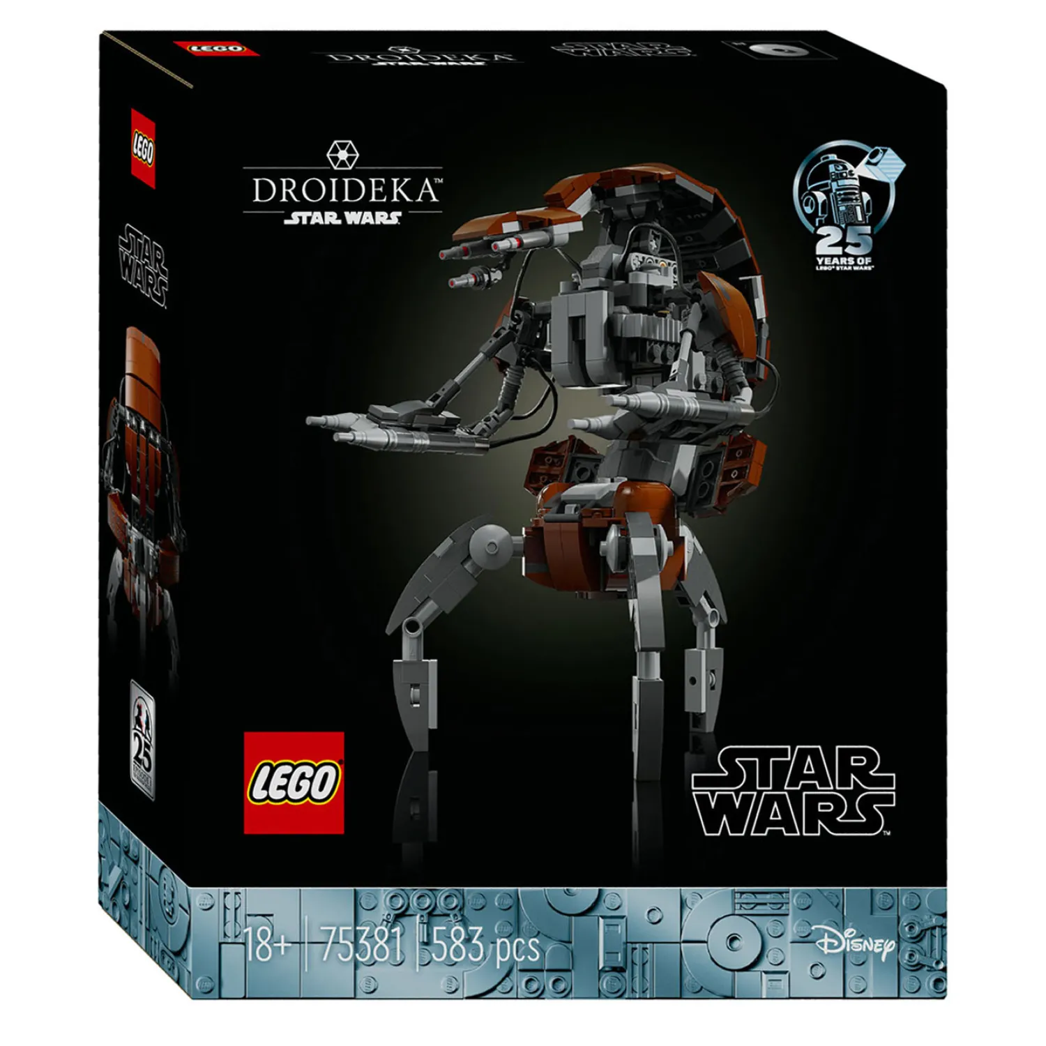 Deze creatieve bouwset is inclusief een standaard met een informatieplaatje, een jubileumsteen ter ere van 25 jaar LEGO Star Wars en ruimte voor de meegeleverde kleine LEGO figuur van een Droideka.