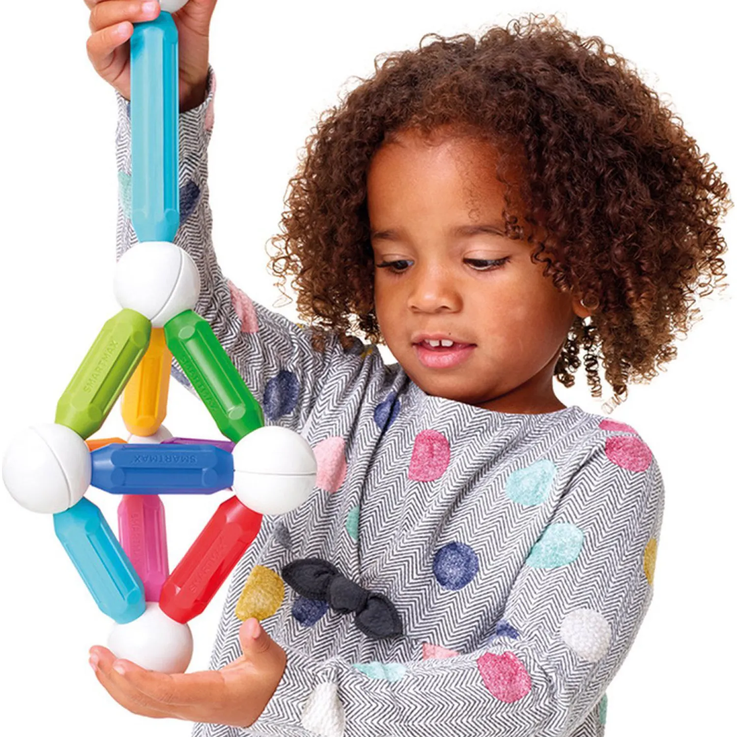 Mooie grote startset van SmartMax met 23 bouwstukken. De set bestaat uit 3 lange staven, 12 medium staven, 8 metalen ballen en een instructieboekje met voorbeelden. Met deze uitgebreide set maak je gebouwen, bruggen en nog veel meer. Je kunt je SmartMax collectie nog uitbreiden met de andere basissets en bouwsets.