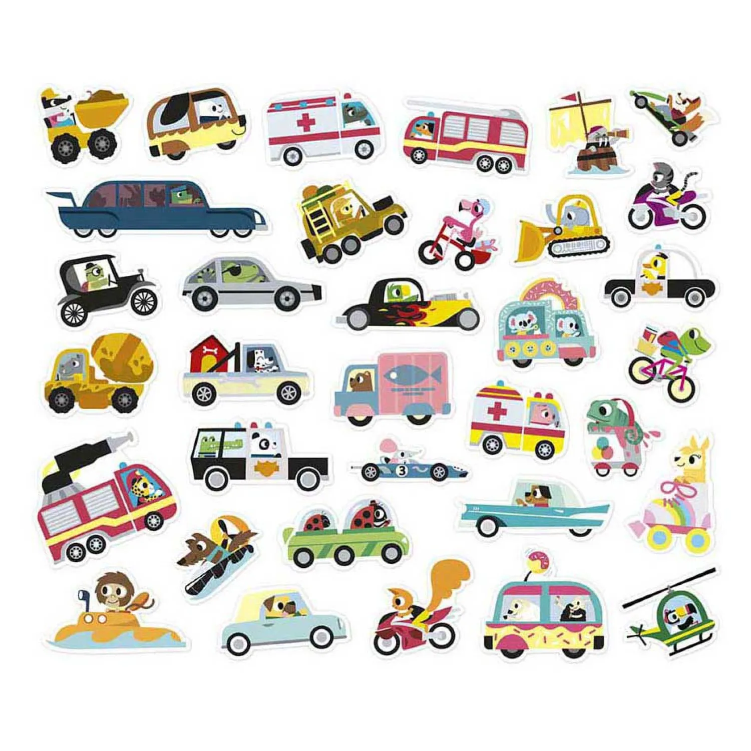 Het formaat van de stickers is speciaal ontworpen voor kleine handjes: elk vel is 20 x 17 cm groot en bevat 33 stickers. De stickers hebben geen randen, zodat ze gemakkelijk te hanteren zijn. Dit zakje stickers is onmisbaar voor lange reizen of om je tekeningen mee af te maken. Door met de stickers te spelen, ontwikkelt je kind op een speelse manier zijn fijne motoriek en creativiteit! De opvallende kleuren en leuke ontwerpen zullen zijn nieuwsgierigheid prikkelen en hem urenlang vermaken, sticker voor sticker!