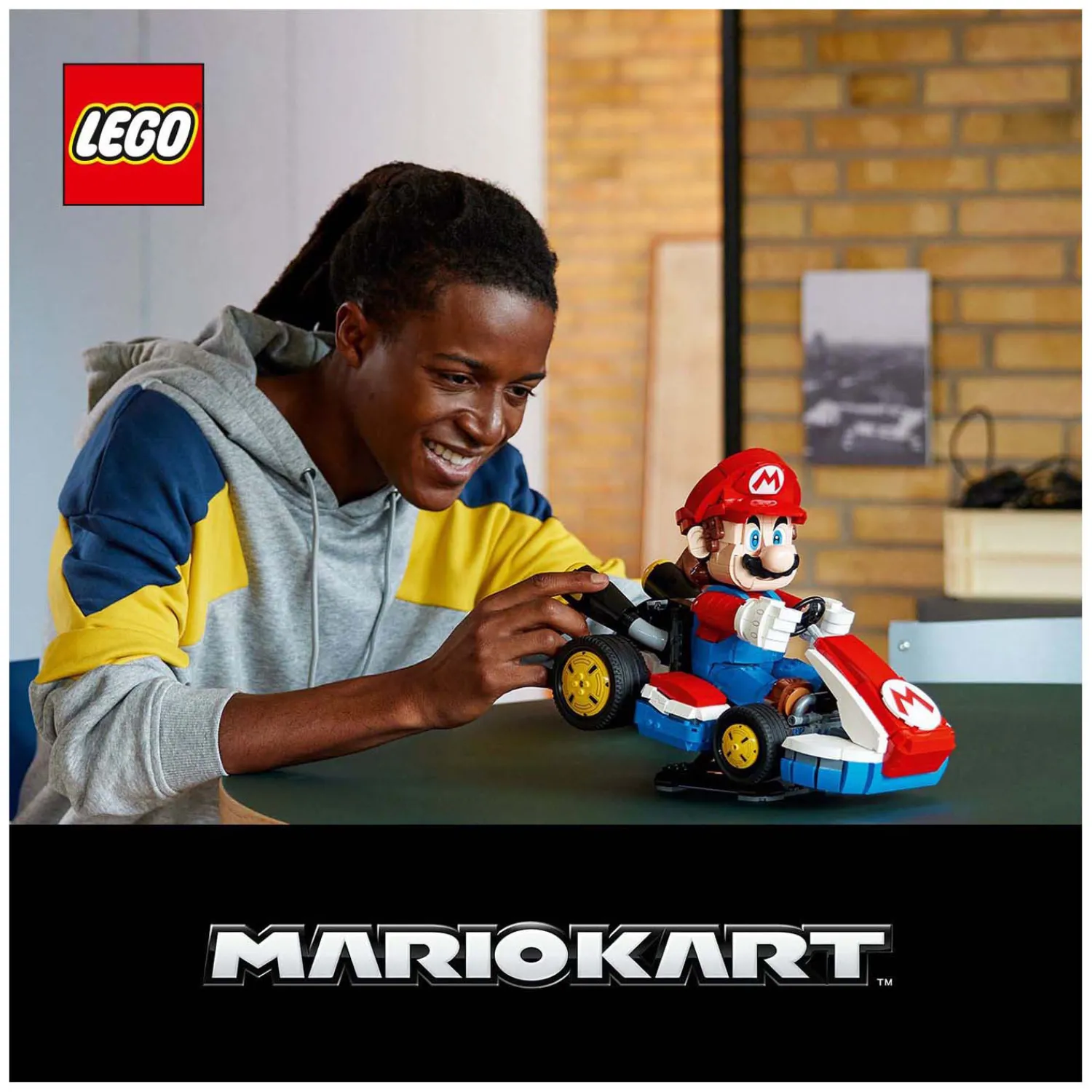 LEGO® Super Mario™ set voor volwassenen – laat je liefde voor Mario Kart™ races zien met deze bouwbare Nintendo® figuur van het bekende personage Mario in zijn standaardkart