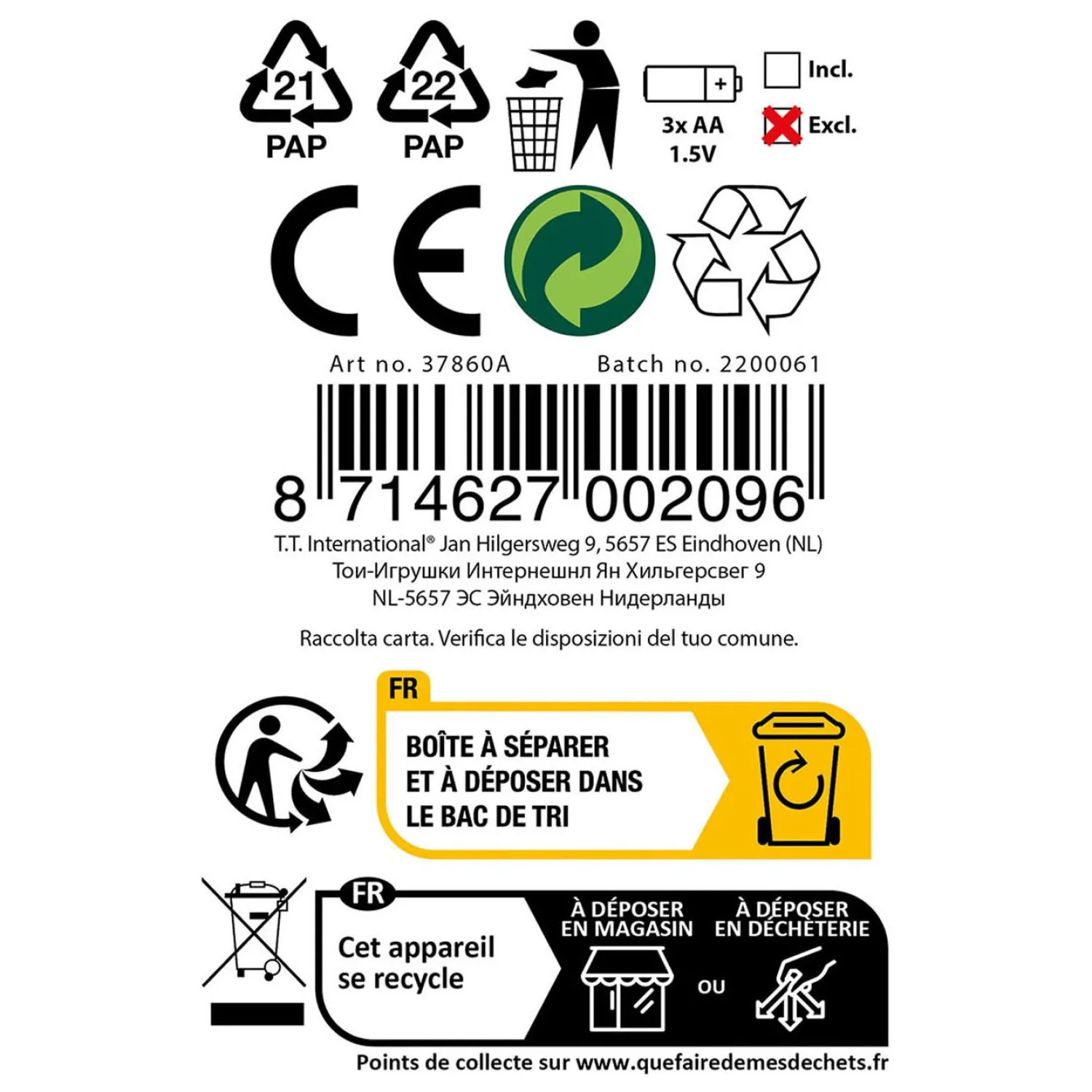 - Waarschuwing: Niet geschikt voor kinderen onder de 3 jaar ivm kleine onderdelen.