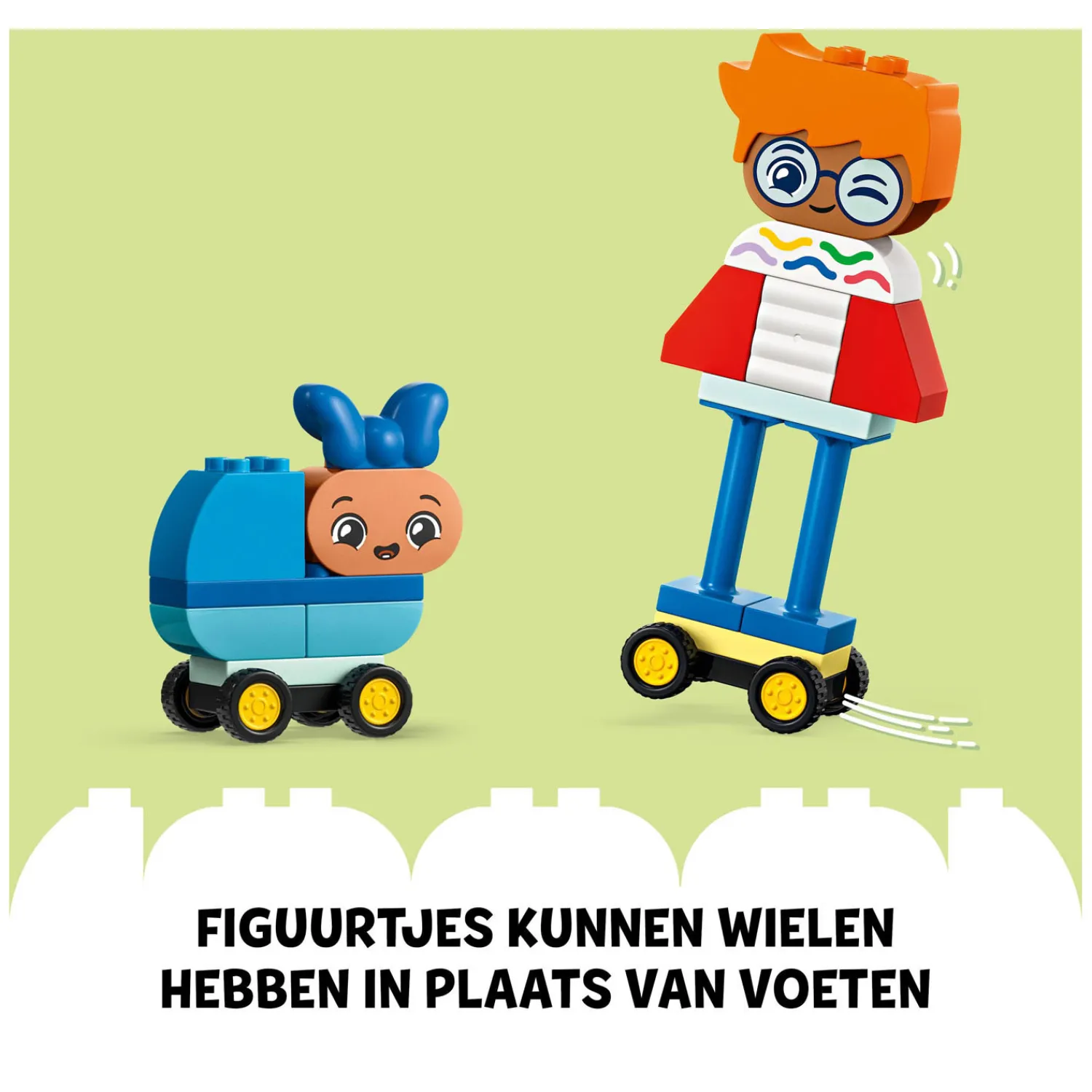 Creatieve vrijheid voor peuters – kinderen van 3 jaar en ouder laten hun personages eruitzien zoals zij willen. Dankzij de toevoeging van een wielbasis kunnen ze er zelfs wielen aan toevoegen in plaats van voeten