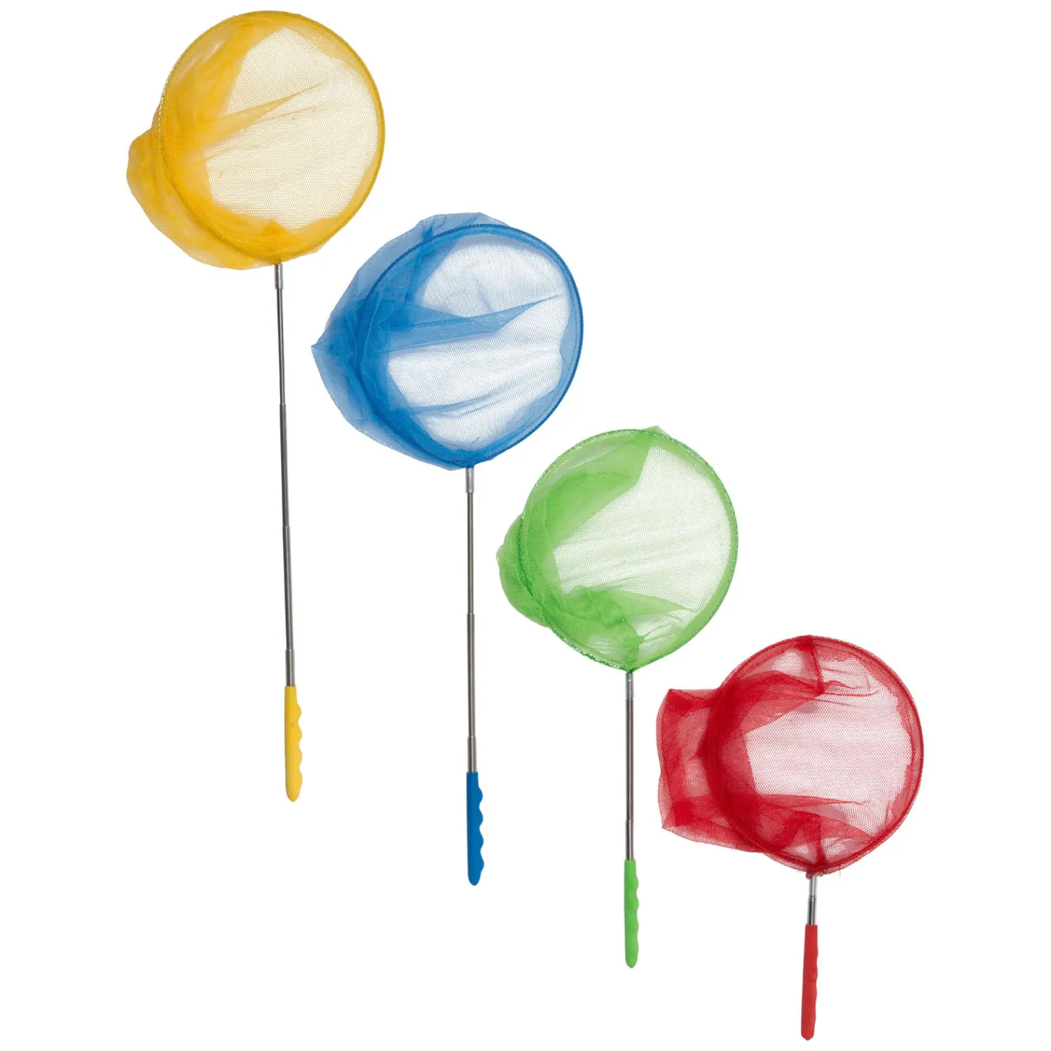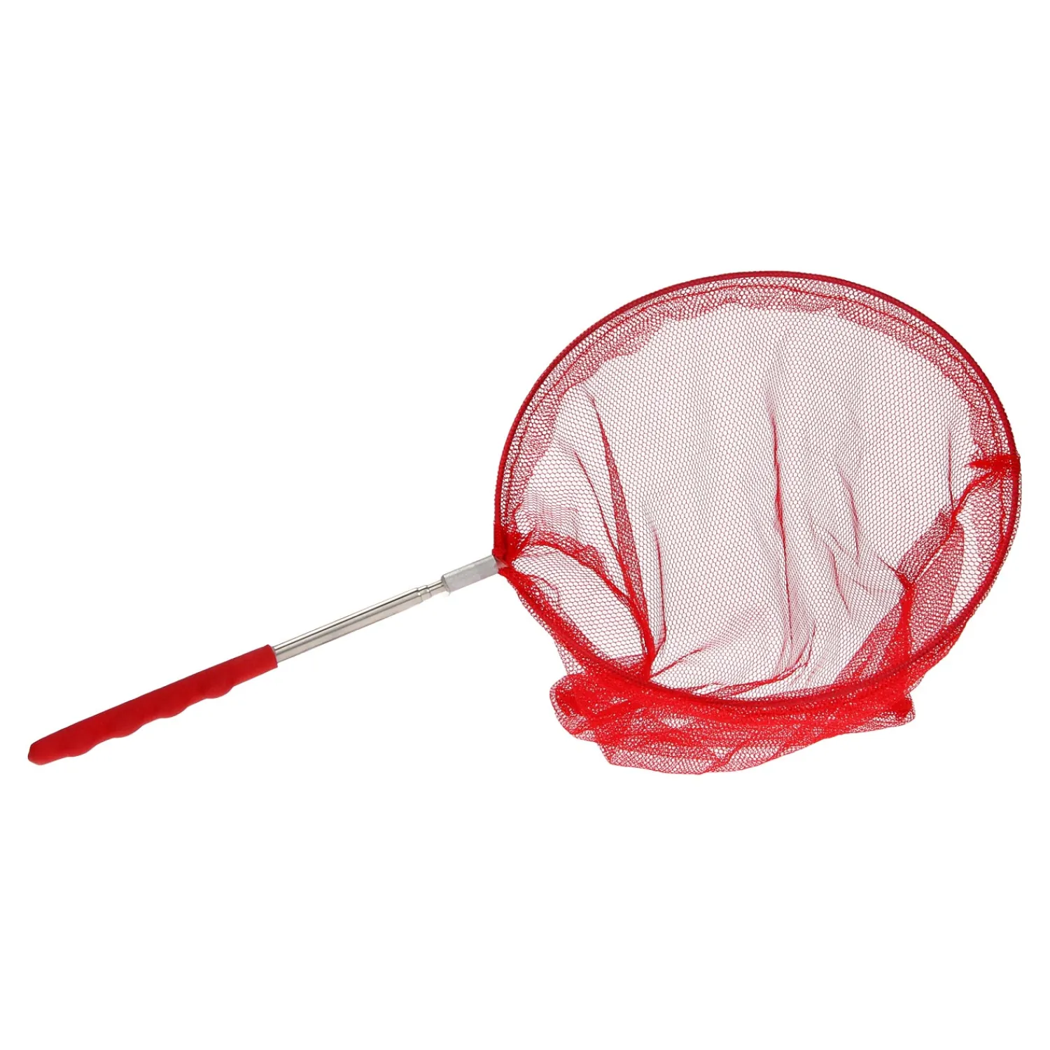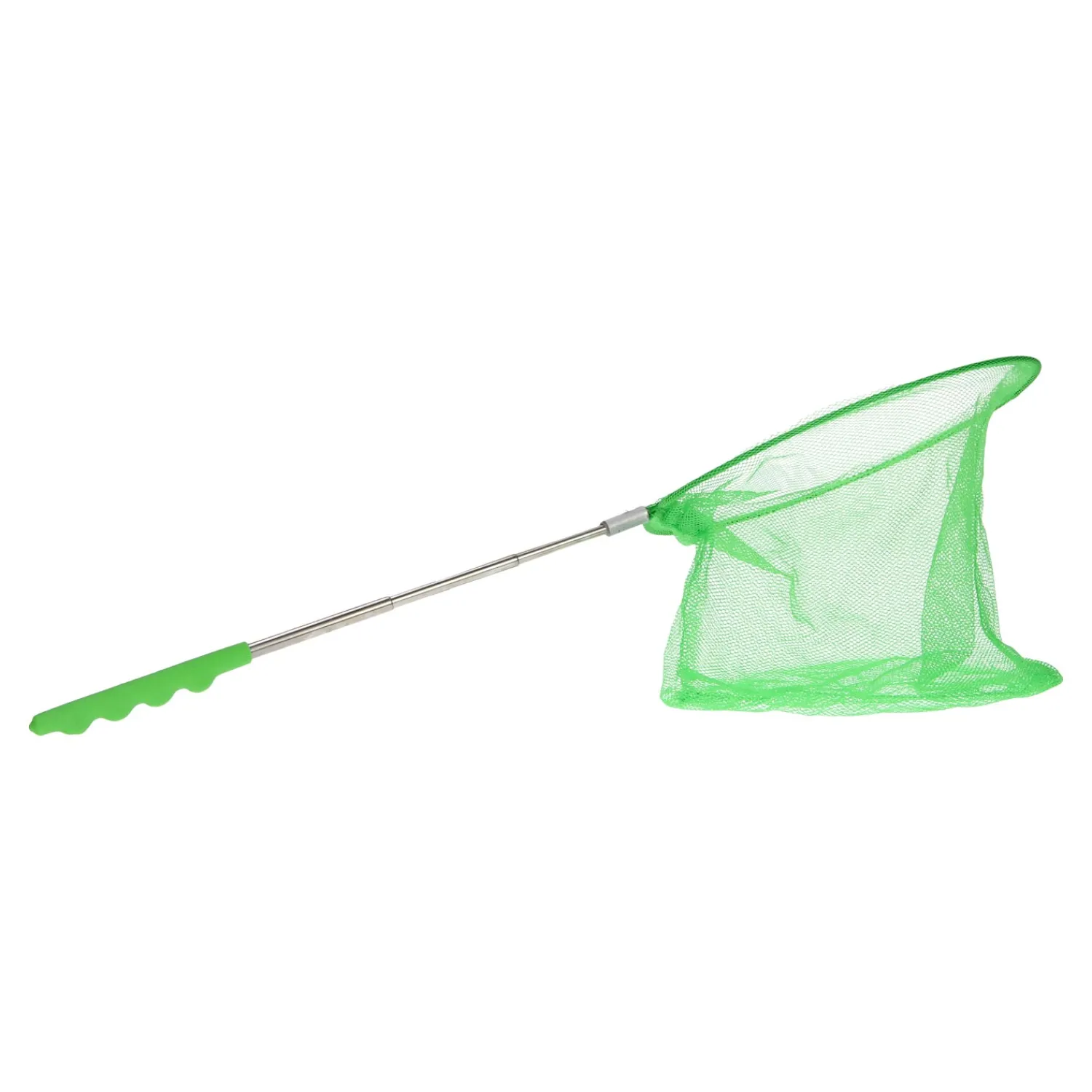 Uitschuifbare visnet. Dit netje is natuurlijk ook te gebruiken als vlindernetje of als schepnetje voor in de vijver.Prijs per stuk, verschillende uitvoeringen/kleuren worden door elkaar geleverd.