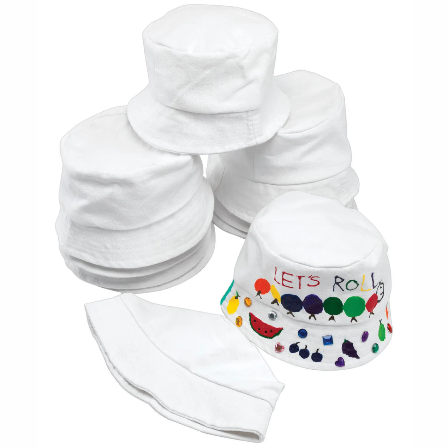 Gebruik tie-dye, stiften, textielverf, strass-steentjes, glitter en meer om te versieren! Geweldig hulpmiddel voor jonge kunstenaars om hun verbeelding te uiten. Comfortabel om te dragen op een zonnige dag, of je nu naar het park of strand gaat. Elke hoed heeft een diameter van 15 cm bij de kruin en een diameter van 23 cm bij de rand.