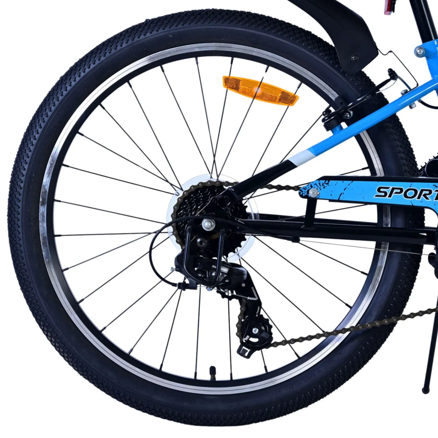Veiligheid staat voorop! Daarom heeft deze gave fiets heeft 2 handremmen en geen terugtraprem.. Daarnaast heeft de fiets 7 versnellingen een leuke bel en reflectoren in de wielen. Ook aan het comfort is gedacht. De mooie zwarte Volare fiets met blauwe accenten heeft een luxe zacht zadel en extra zachte handvaten, een handige achterdrager, en een stevig frame dat wel tegen een stootje kan. Verder heeft de fiets een standaard zodat hij netjes blijft staan en een sterk slot. Om zo lang mogelijk van de fiets te kunnen genieten heeft deze een extra lange zadelpen waardoor de fiets nóg langer met het kind meegroeit en ook het stuur is in hoogte verstelbaar.
