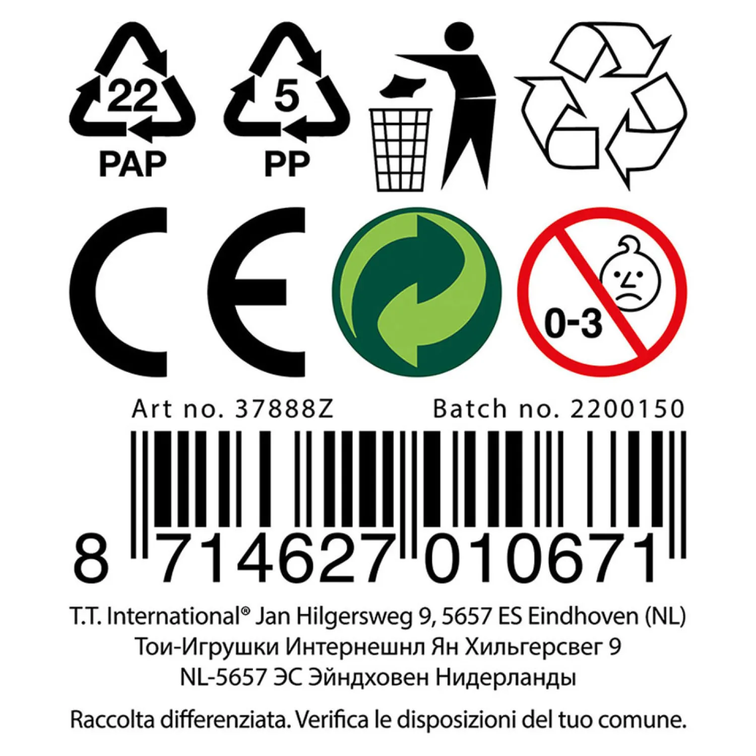 - Waarschuwing: Niet geschikt voor kinderen onder de 3 jaar ivm kleine onderdelen.