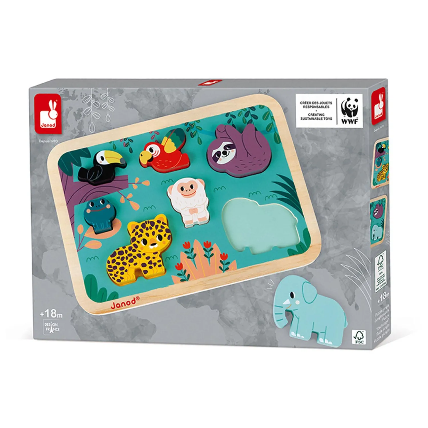 Het Amazone-regenwoud is kostbaar. De bomen zijn de longen van onze planeet en het regenwoud is de thuisbasis van 10% van alle bekende diersoorten. Met milieuvriendelijk speelgoed, ontwikkeld in samenwerking met WWF®, ondersteunt Janod de inspanningen van WWF®™ om het milieu en de biodiversiteit te beschermen.