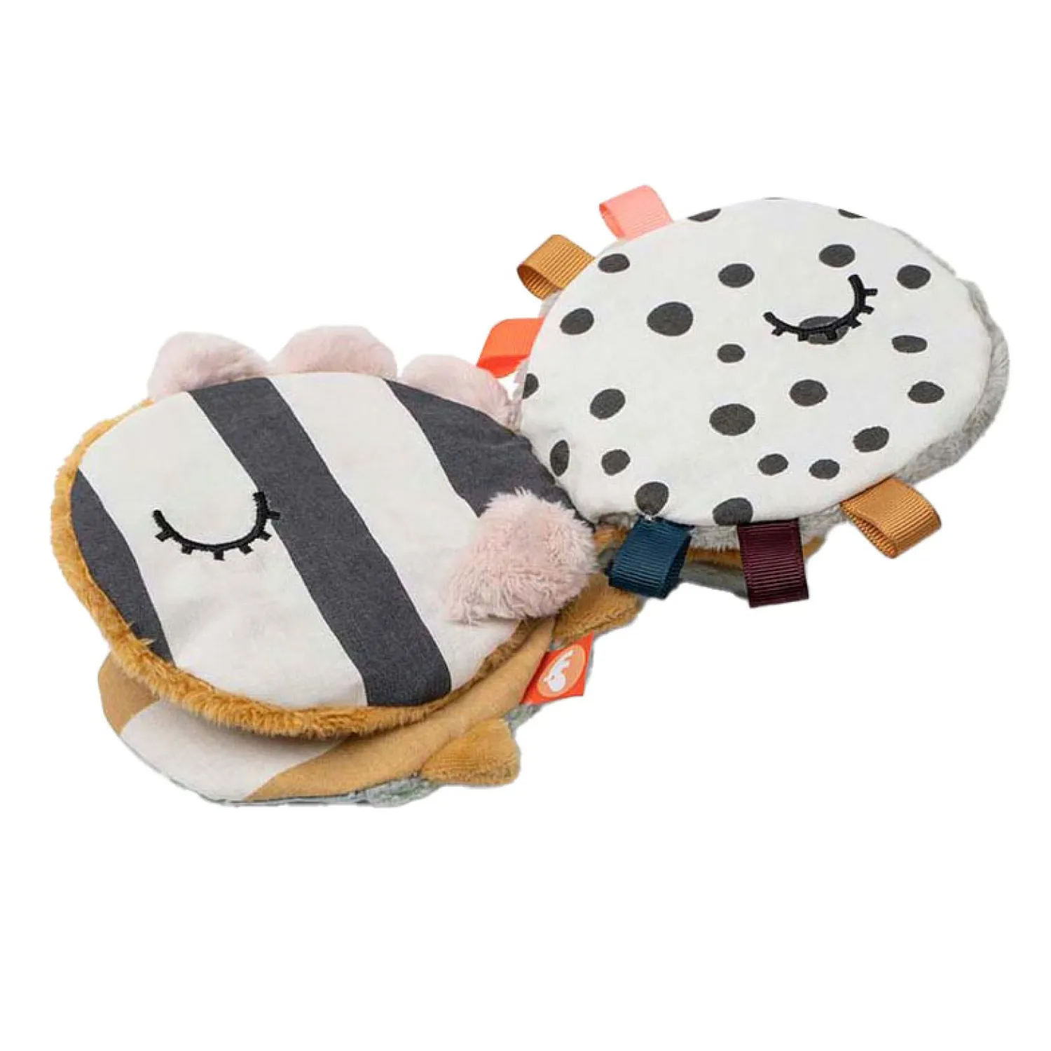 Kleine vingertjes kunnen genieten van verschillende texturen en de zachte stekels en kleurrijke labels vastpakken. Sla de pagina om en hoor een lief knisperend geluid, terwijl nieuwsgierige ogen worden geboeid door stippen en strepen in contrasterende kleuren die de nieuwsgierigheid van je baby stimuleren.