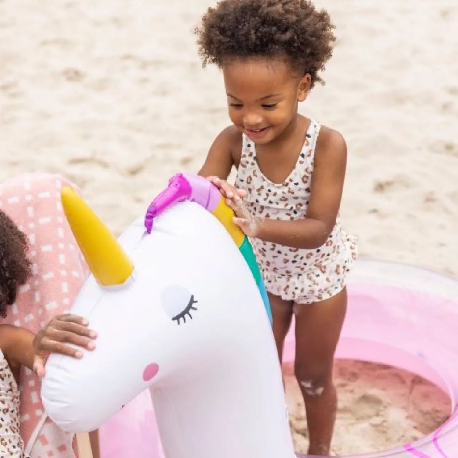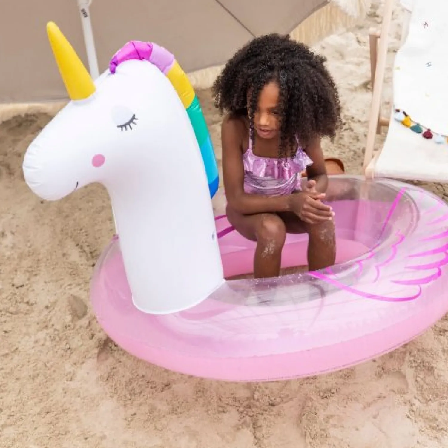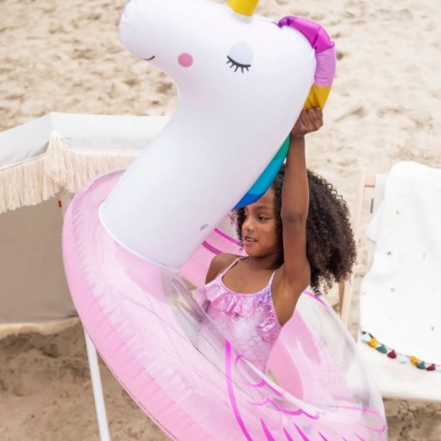 De prachtige opblaasbare ring in de vorm van een eenhoorn is het perfecte watergezelschap. De zwemband van Swim Essential in roze en wit is ontworpen voor kinderen vanaf 6 jaar, maar kan ook gebruikt worden door tieners en volwassenen. De perfecte strandaccessoire voor iedereen die van roze en sprookjesachtige motieven houdt.